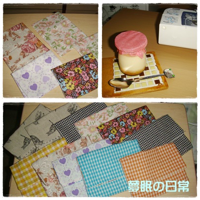 ミシンの合間に豆腐屋さんの豆乳プリンを楽しむ。