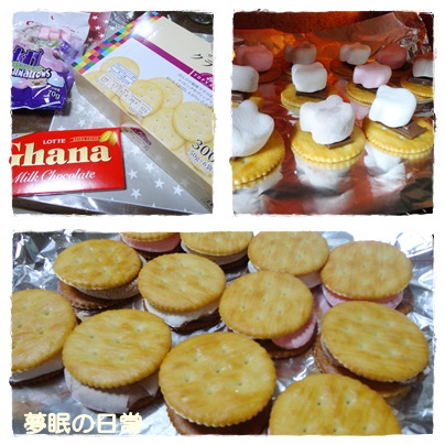 我が家ではクラッカーの上に板チョコとマシュマロを置いて