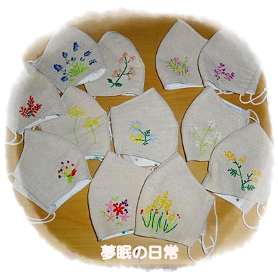 手刺しゅうのマスクの評判が良いのでまた作ってみた。
