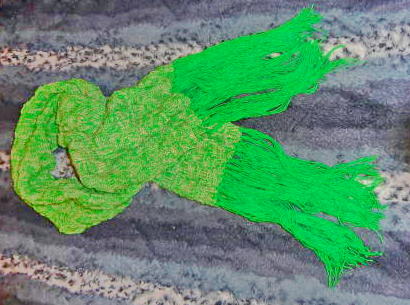 更にまたしても残り毛糸、中細2本どりで編んだマフラーは