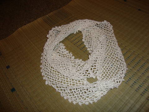 前回に編んだケープ風スヌードと同じ糸で編みました。 一重で垂らすのも良いけど 二重にしても使いやすそう! さてさて?次は何を編みましょう?
