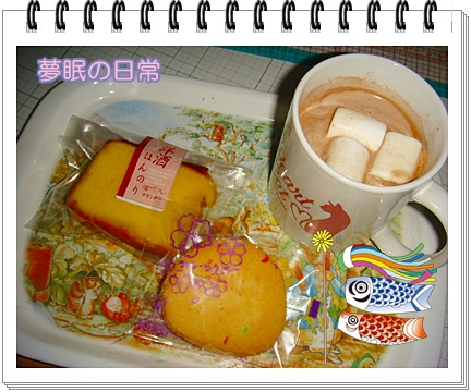 今日は少し寒かったのでココア、マシュマロ入りで甘くってホッとします。