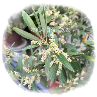 ご近所さんのオリーブの木、満開でした。
