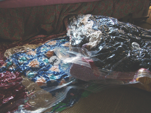 気候が安定してきて日中は暑い時も… 朝晩が涼しいのが本当に安定といえるか謎だけど(笑) とりあえず?衣替えしました。 服はずいぶん処分して楽になったけど… 嵩張るのは編んだ作品(T_T) 山のようです… 必殺?技は?と言うほどではありませんが数年前から圧縮袋を利用してます。 2袋^^; オークションにでも掛けようかしら(笑)