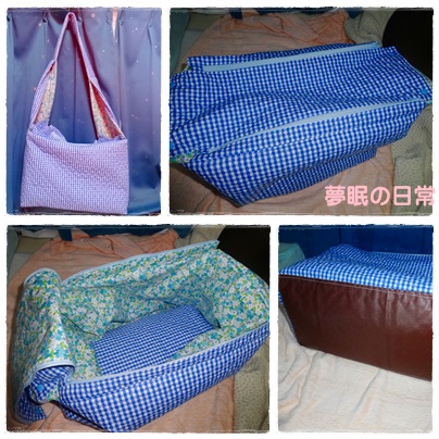 中に入れるクッションも実は古いクッションをつぶして中身をリサイクル。