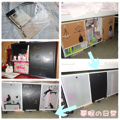 そしてベット下のボックスはコルクボードを利用して扉を付けてましたが、