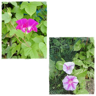 全然、茂らないけど花は良く咲く朝顔(右下)