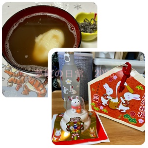 小さな鏡餅からお餅を取り出してチンして入れました。