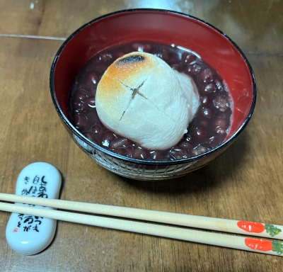 お善哉はインスタント、お餅は小さな鏡餅に入ってたの