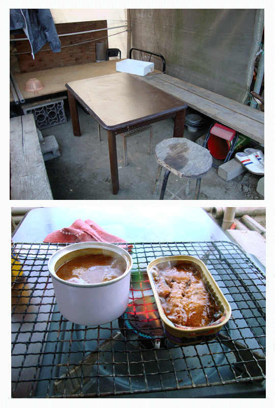 とりあえず、缶詰を温めてアテに(笑)