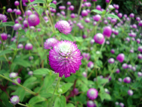 畑の花は千日紅が盛り。