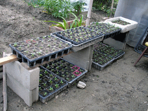 野菜の苗をあるので畑は今、苗だらけ、元気なのはサツマイモだけ~