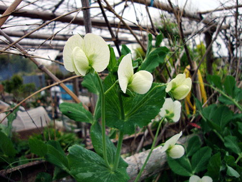 ソラマメもえんどう豆、既に鞘は出来てるけど…寒いので大きくなりません(T_T)
