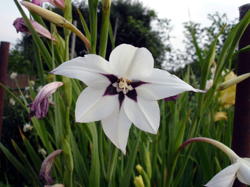珍しいと言えばグラジオラスに混じって咲いてる花
