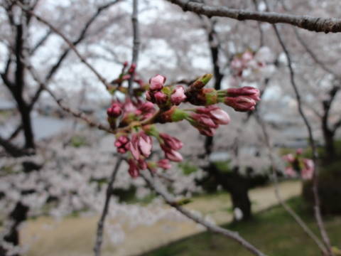桜は散りかけも美しいし、チューリップは店先で愛らしさを強調してるし。