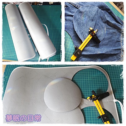 まん丸に切って、使い古したGジャンも丸くカットして利用します。