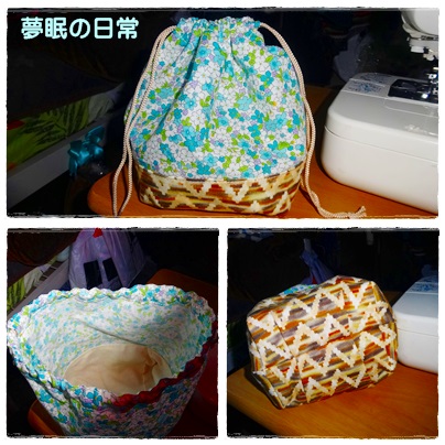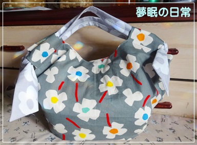 有り合わせの布を使って作ったのでリボン持ち手は別布になっちゃった。