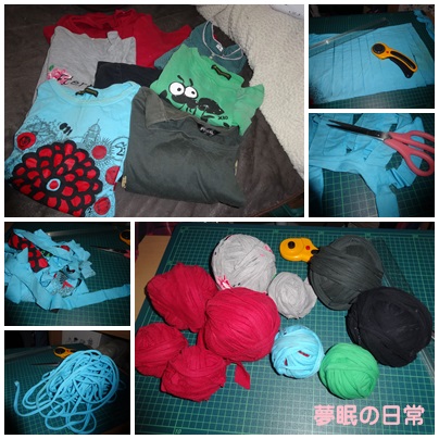 後は引っ張ったら丸まってTシャツヤーンの完成!