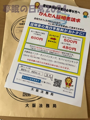 一番近い銀行のATMで支払い無事に書類は入手できました。
