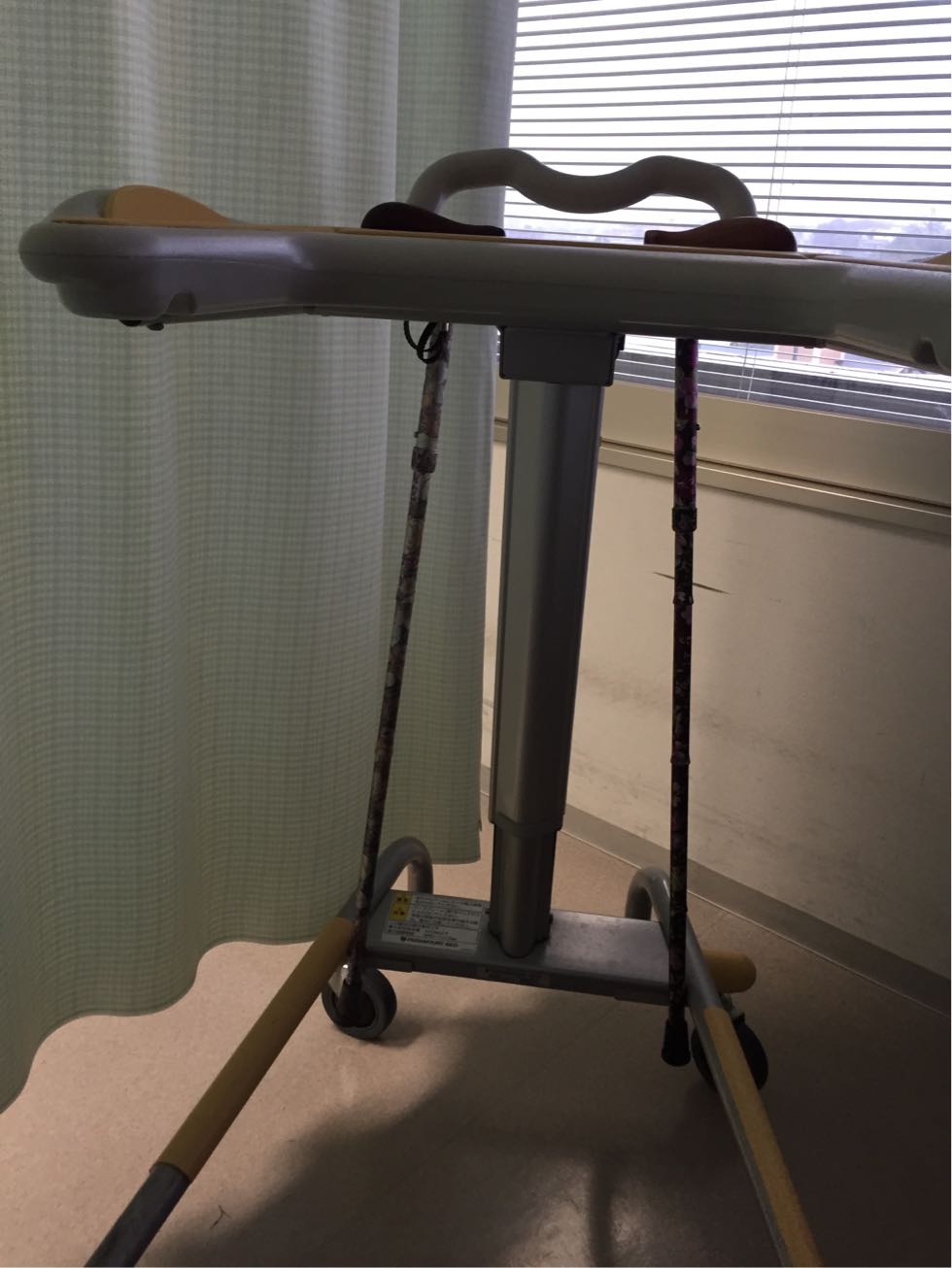 本日のリハビリは二本杖歩行も安定してると言われました。