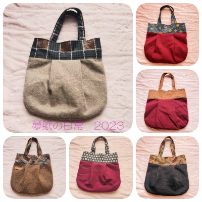 なのでつなぎ合わせて大き目のトートバッグを作りました。