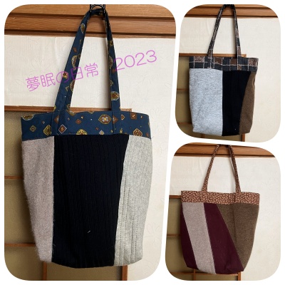 着なくなったセーターとズボンでトートバッグ作りました。