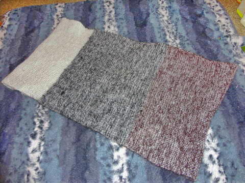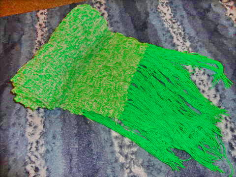 更にまたしても残り毛糸、中細2本どりで編んだマフラーは