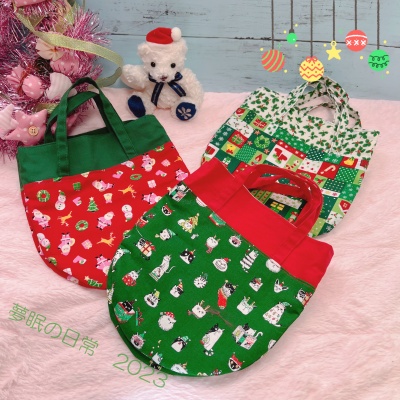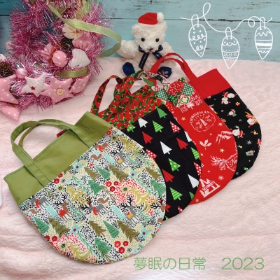 ずいぶん、クリスマス柄の布が減ったけど、まだまだ残ってる。
