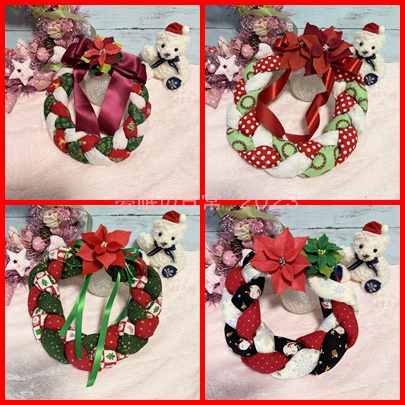 リース本体は手芸セミナーで教えていただいた三つ編みリース