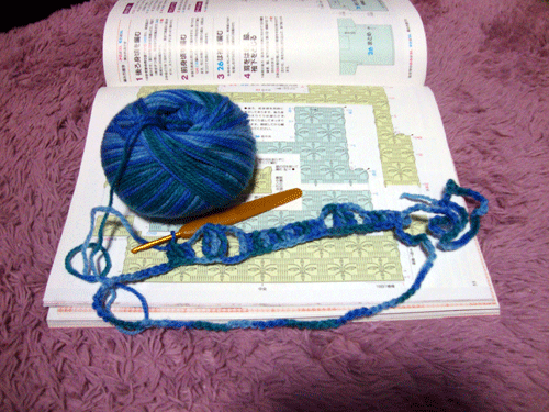 と言いつつ編み始めましたが…少し編んでイメージと違い^^;