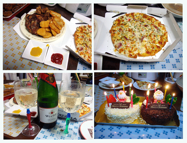 ご近所さん差し入れのチキンと昨日、残ったケーキやワインを頂きました。