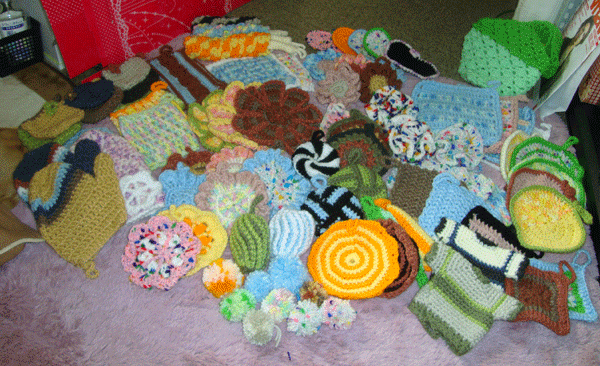 今シーズンも前半、面白がって編んだエコたわし、たくさん編めたので無事?