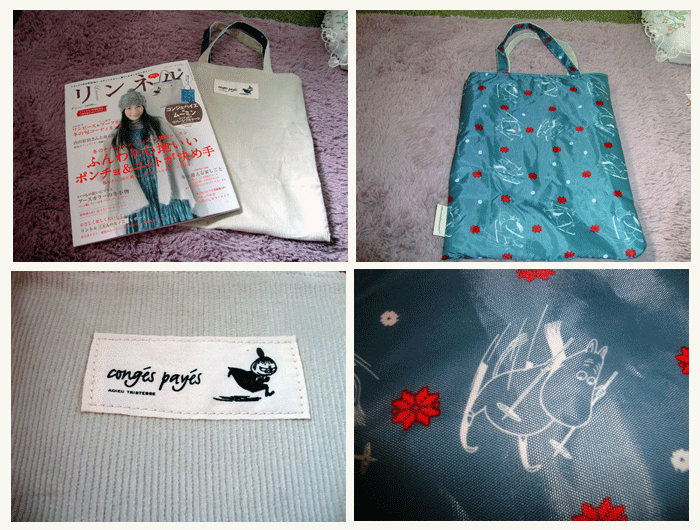 裏はナイロン生地にスキーするムーミンの絵柄。
