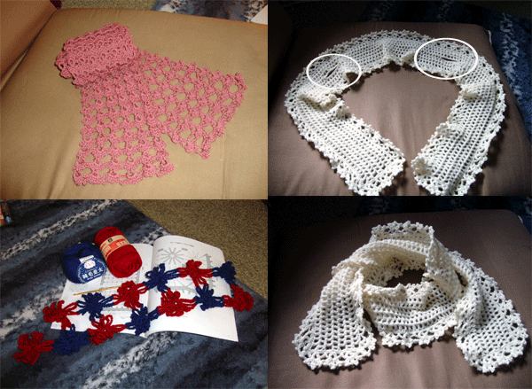 小さなスカーフを編んでます。