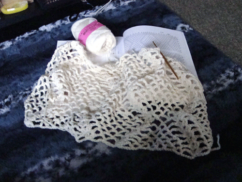 そして更に細い編み針、毛糸で編み始めちゃった。