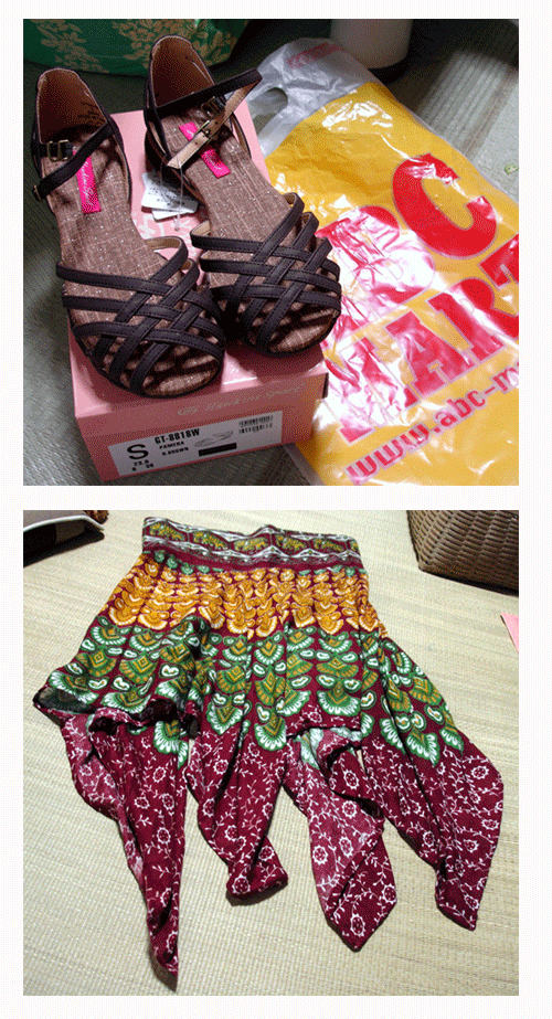 サンダルはABCマートで何故かこの色だけバーゲンでした。