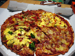 ピザを注文しちゃった。雨だし畑にも行けないから早目の夕飯でした。