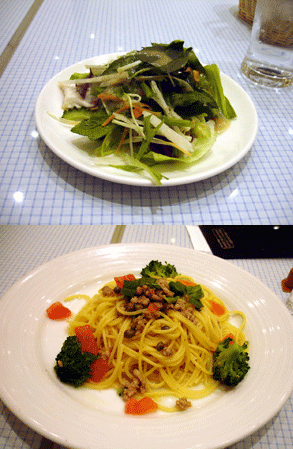 パスタは春野菜とひき肉でした。麺は好きな細さだったけど