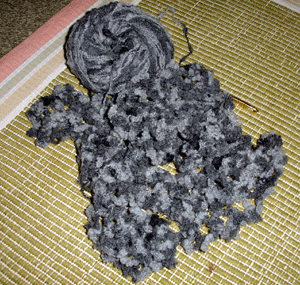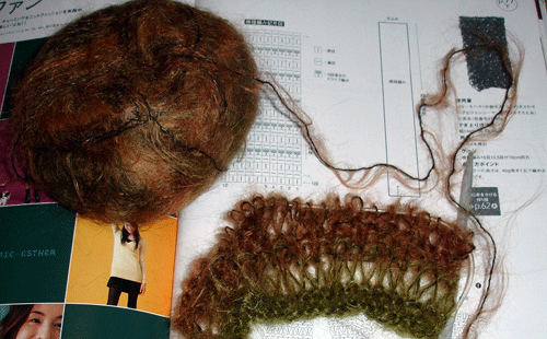 早速、いっぱいの毛糸の中から選んで編み始めました。