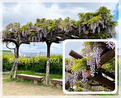 途中に小さな公園があって藤棚がありますが、もう終わりかけ?