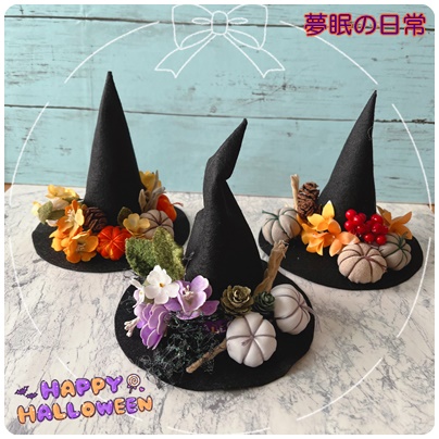 ハギレであっという間に、そしてミニサイズの魔女の帽子に飾り付け