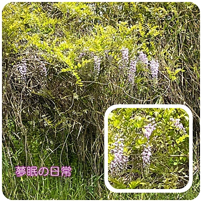 出かけるときに駐車場の奥の方の藪?には自生?の藤の花を見つけました。