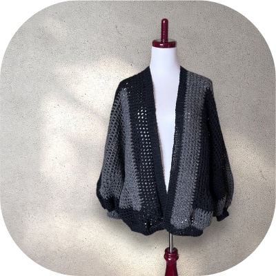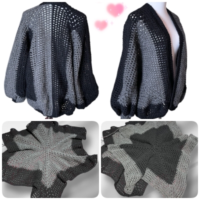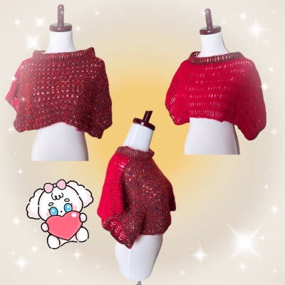 本体はかぎ針、袖口等の端は棒針編みです