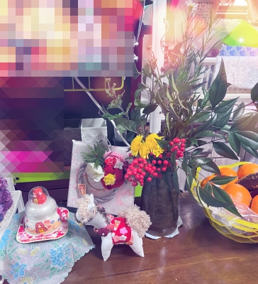 お花も残ってたし干支や正月飾りも含めて